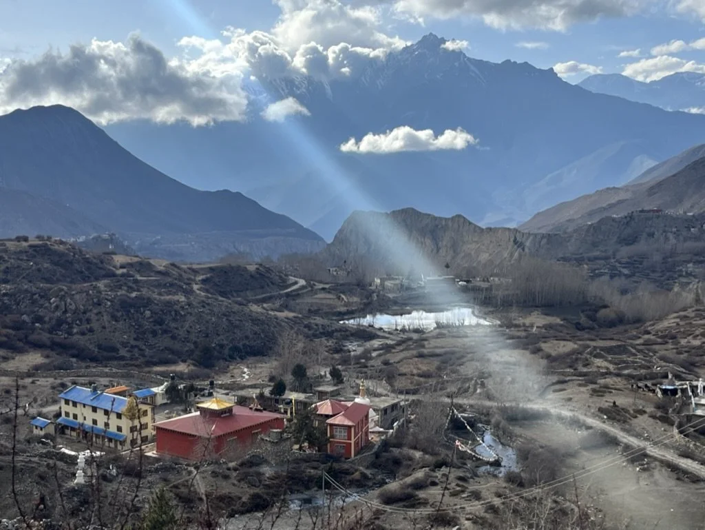 A long but stunning jeep journey carries us into Lower Mustang, following the Kali Gandaki as the landscape transitions from green valleys to wind-sculpted stone. The road itself begins to open us up into what is possible. Stops along the way include caves, temples, and rural villages, and hiking through beautiful montane landscapes with glimpses of towering peaks when the sky opens up.