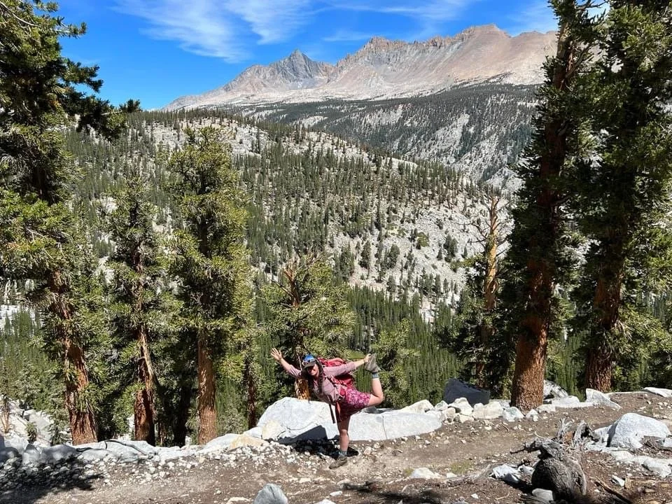 I love the mountains, streams, and trees, and to combine yoga and stillness with it and creating connection with others makes my heart full. - Monica (High Sierra trip, 2022)